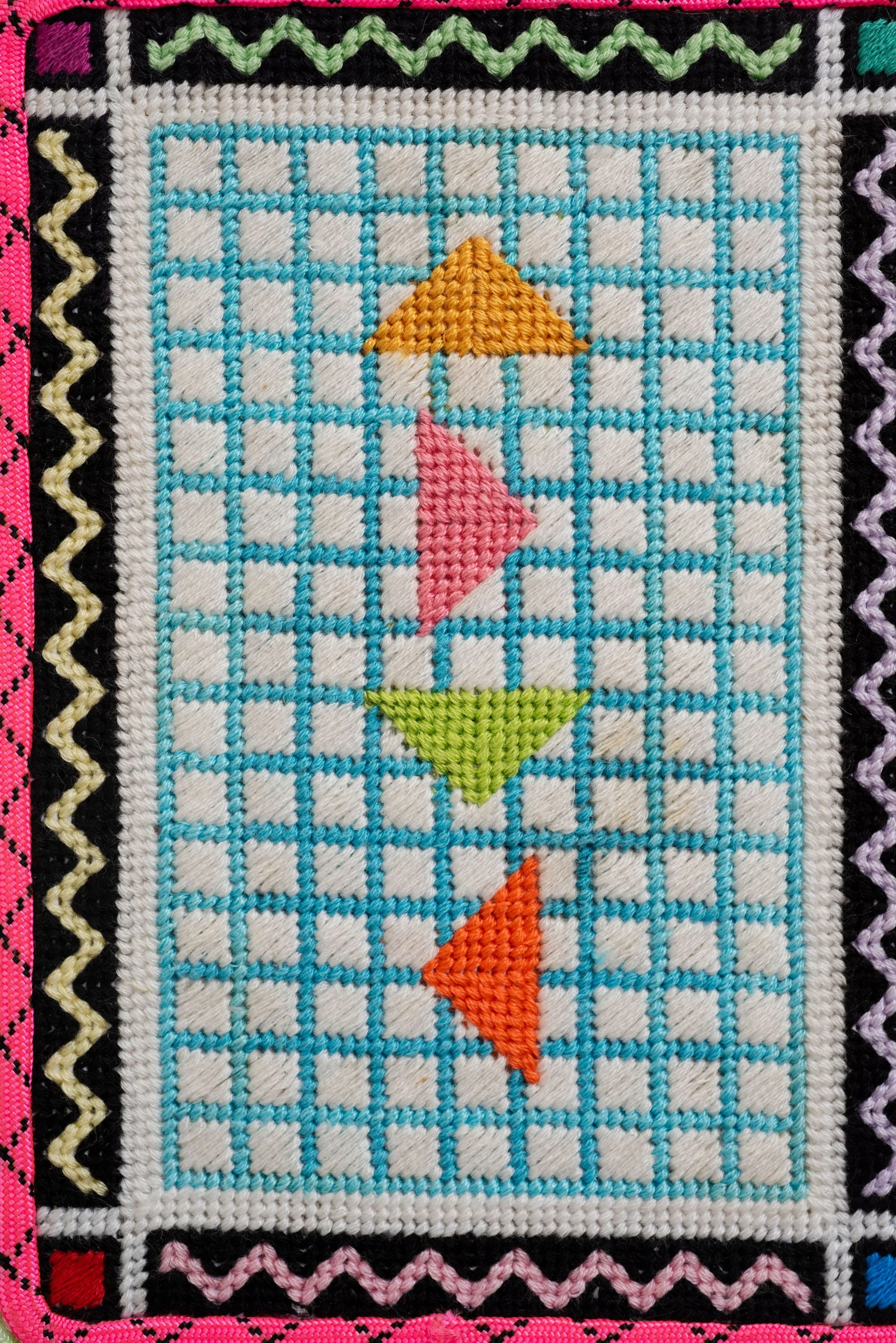 Bargello Girl 3, 2023 Needlepoint mesh, yarn, fake fur, E6000, 12" x 10", $400