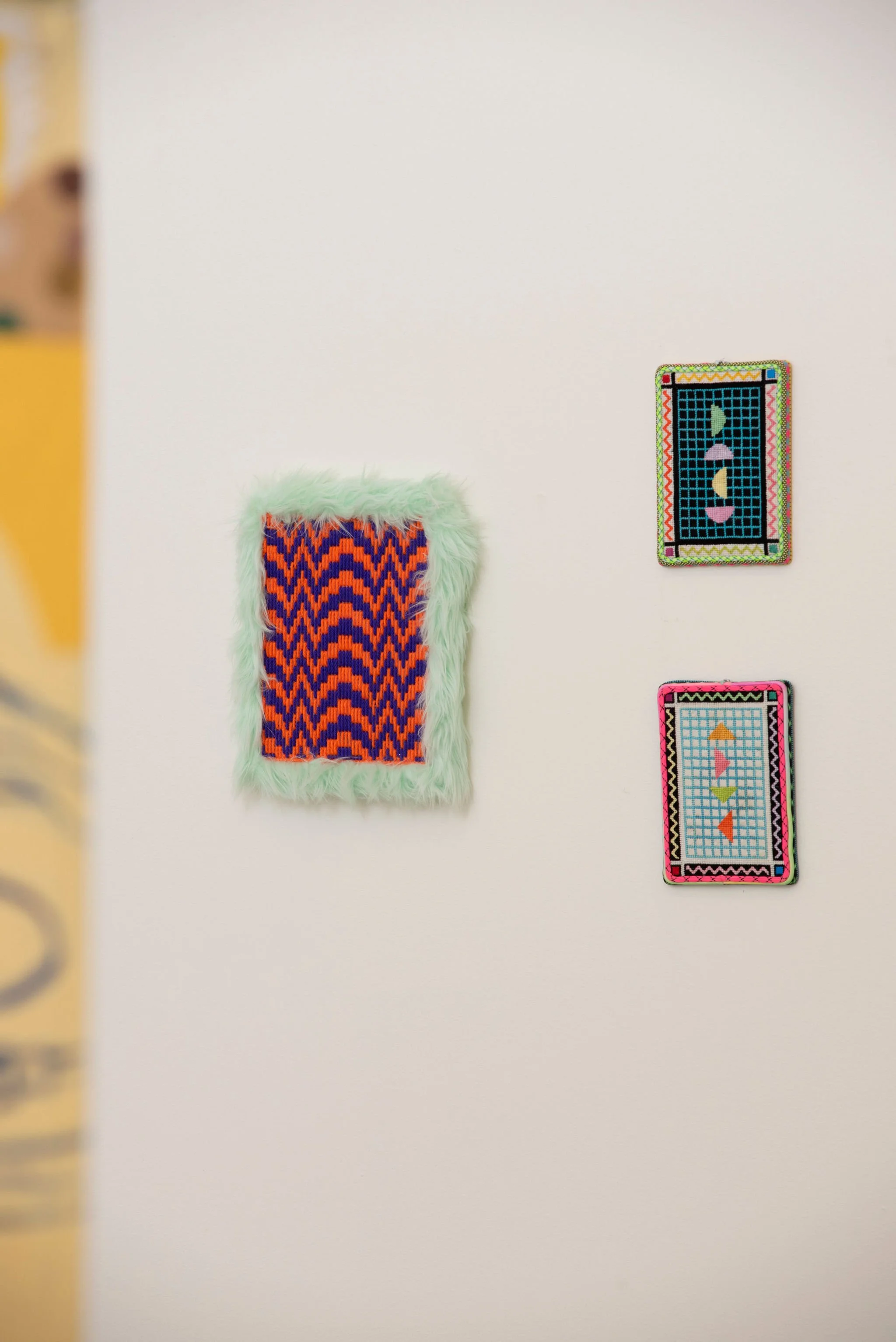 Embroidery floss, needlepoint canvas, nylon cord, and E6000 on wood 7.25 x 11.25 in, $950