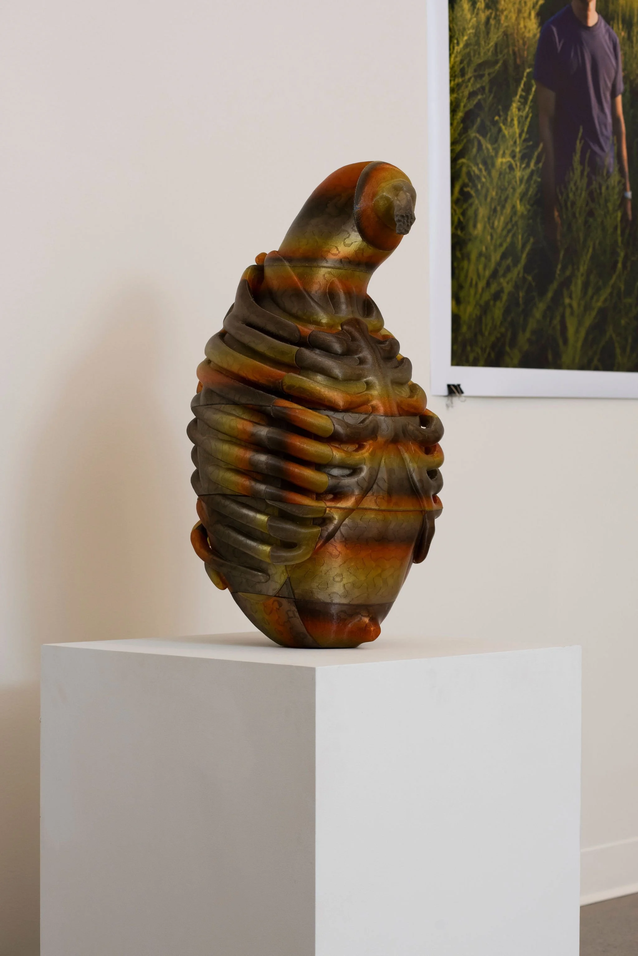Manipulating their body by merging it with edible plants through 3D scanning and software manipulation, their sculptures investigate the gendered and fragmented nature of bodies while navigating the ecological and ethical complexities of bioplastics, particularly those derived from GMO corn. Their work questions sustainability narratives, industrial agriculture, and the compartmentalization of digital and physical spaces, all while staying grounded in materiality.